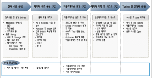 · 현행 여러DB원천 정보에서 DW appliance Migration 작업이 원활히 이루어질 수 있는 절차로 진행하며 작업완료 후 안정적인 운영 환경 구축이 되도록 연관작업에 대한 확인이 필요